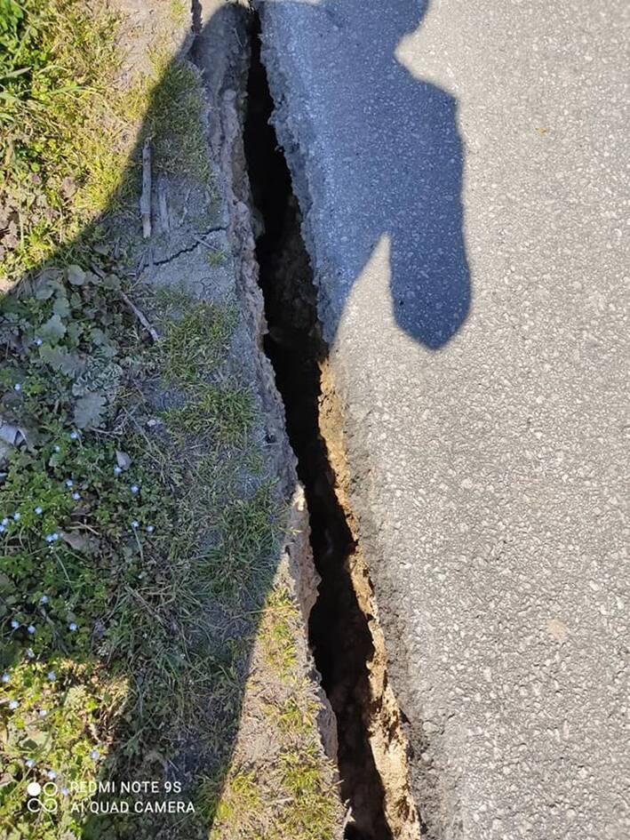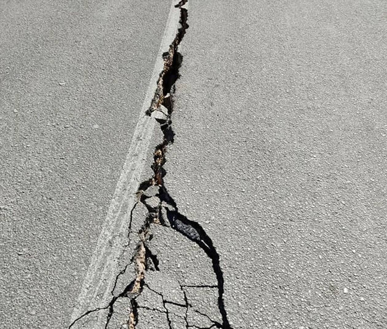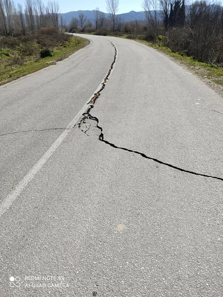 Δέος προκαλούν φωτογραφίες που απεικονίζουν την άσφαλτο στον δρόμο στο Βλαχογιάννι να ανοίγει στα δύο και σε αγρό στον Βαρκό να ανοίγει “κρατήρας” και να βγαίνει νερό από την γη, μετά τον σεισμό στην περιοχή.