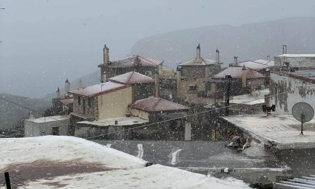 Σύμφωνα με το cretapost.gr, χιόνι έριξε και στ’ Ανώγεια, ενώ στα λευκά «ντύθηκε» ο Κρουσώνας του Δήμου Μαλεβιζίου.
