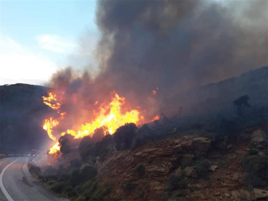 Φωτιά έχει ξεσπάσει στην Άνδρο. Μάχη με τις φλόγες δίνουν από νωρίς το πρωί δυνάμεις της Πυροσβεστικής και εθελοντές.