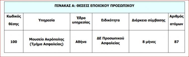 Το Μουσείο Ακρόπολης ανακοινώνει την πρόσληψη 87 ατόμων με ΑΣΕΠ ΔΕ Προσωπικό Ασφάλειας με σύμβαση εργασίας ιδιωτικού δικαίου ορισμένου χρόνου, διάρκειας 8 μηνών.