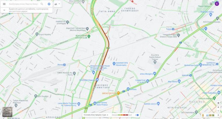 Όπως φαίνεται κι από τον χάρτη της Google, με την κίνηση στους δρόμους, από το ύψος της οδού Κοντονή μέχρι και την Αγίας Άννης τα αυτοκίνητα επί της ουσίας είναι... ακινητοποιημένα αυτή την ώρα. Αυτό είναι το δεύτερο τροχαίο ατύχημα που προκαλεί κυκλοφοριακό κομφούζιο στην Αθήνα σε ένα 24ωρο, μετά την τρελή πορεία του λεωφορείου στο Χαϊδάρι που κατέληξε πάνω σε δυο φανάρια και «φράκαρε» τη Λεωφόρο Αθηνών το απόγευμα.