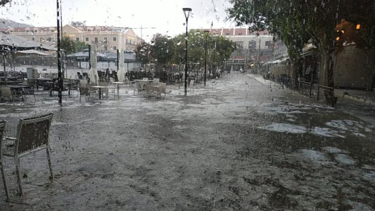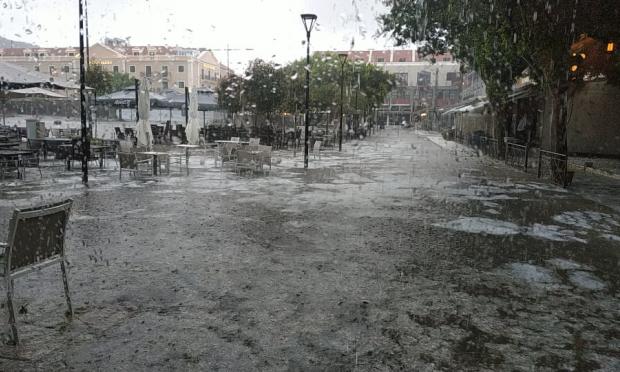 Κακοκαιρία σημειώθηκε το μεσημέρι του Σαββάτου στην Κεφαλονιά, με έντονη χαλαζόπτωση στο Αργοστόλι και σε άλλα σημεία του νησιού.