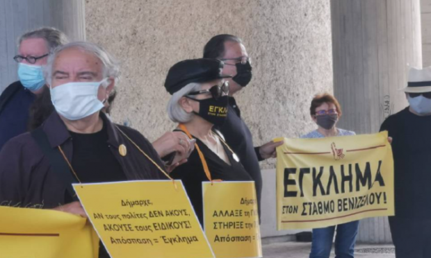 Όπως φαίνεται από τα πλάνα του GRTimes.gr, φορώντας μαύρα ρούχα και κρατώντας πλακάτ και πανό που γράφουν με μεγάλα γράμματα «έγκλημα στον Σταθμό Βενιζέλου», οι πολίτες διαμαρτύρονται για τη σχεδιαζόμενη απόσπαση και απομάκρυνση των αρχαιοτήτων του σταθμού Βενιζέλου.