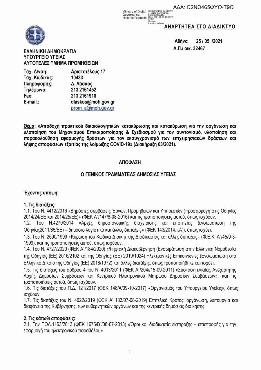Συνεχίζονται τα «πάρτι» διαγωνισμών με πρόσχημα την πανδημία, αλλά και τα ύποπτα… «σούρτα φέρτα» προσωπικών δεδομένων. Το υπουργείο Υγείας επικύρωσε στις 31 Μαΐου 2021 μία ακόμα συνεργασία με ιδιωτική εταιρία, με αντίτιμο 58.000 ευρώ, για έργο που αφορά τόσο τη διαχείριση της πανδημίας όσο και τη διαχείριση προσωπικών δεδομένων.