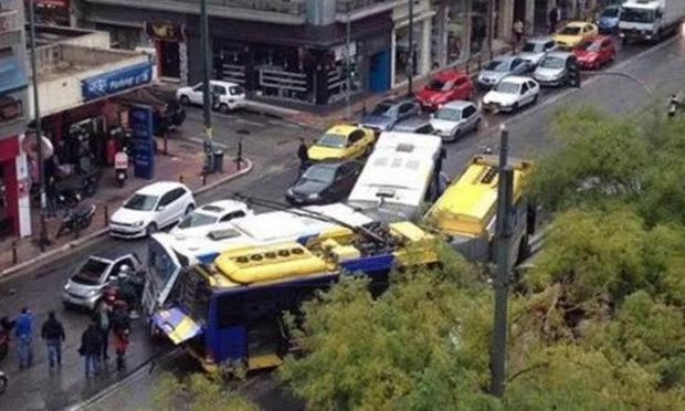 Σύγκρουση σημειώθηκε το απόγευμα της Τετάρτης, 09.06.2021, στο Περιστέρι μεταξύ ενός αστικού λεωφορείου κι ενός τρόλεϊ.