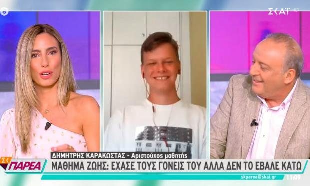 «Οι γονείς με βοήθησαν να συνεχίσω αφότου έφυγαν, γιατί μου έδωσαν ουσιαστικά ένα ακόμα στόχο, θα ήθελαν να πετύχω να μπω στη σχολή που θέλω, και απ’ ό,τι φαίνεται τα κατάφερα» τόνισε στον ΣΚΑΪ χωρίς να χάνει το χαμόγελό του.