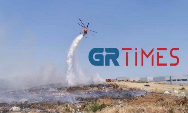 Η φωτιά καίει ξερόχορτα και σκουπίδια, ωστόσο η κατεύθυνσή του κύριου μετώπου είναι προς τη Νεοχωρούδα που απέχει περίπου δύο χιλιόμετρα από το σημείο.