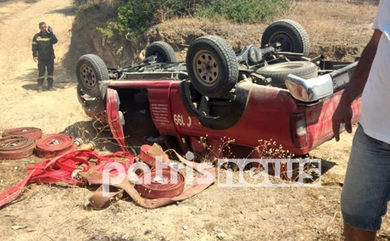 Κατά την εκτροπή του είχε δύο επιβαίνοντες όπου ο ένας πυροσβέστης τραυματίστηκε και μεταφέρεται με ασθενοφόρο του ΕΚΑΒ στο νοσοκομείο.