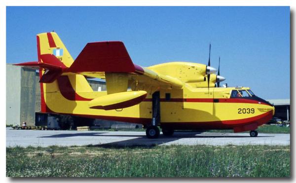 Το Canadair CL-215, το οποίο φέρει δίχρωμη παραλλαγή με κίτρινο και κόκκινο χρώμα, έχει ως κύρια αποστολή του την αεροπυρόσβεση, αλλά μπορεί να χρησιμοποιηθεί και σε αποστολές έρευνας και διάσωσης. Έχει τη δυνατότητα λήψης 5.000 λίτρων νερού σε 12 δευτερόλεπτα.