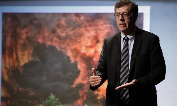 Εκστασιασμένος ο Συνολακης με τις φωτιες στην Καλιφορνια. Τον ρώταγε η δημοσιογράφος για την Ελλάδα αλλα το μυαλο του ήταν στην Αμερική που ειναι χώρα μαγική οπως φαινεται.