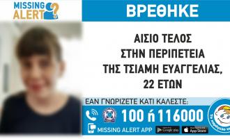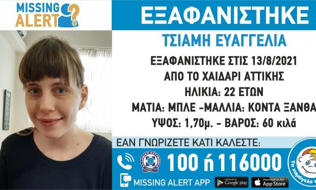 Σύμφωνα με τις Αρχές, η νεαρή γυναίκα είχε εξαφανιστεί από την περασμένη Παρασκευή, από το Χαϊδάρι και είχε εκδοθεί Missing Alert, κατόπιν αιτήματος των συγγενών της. Τελικά χάρη στην παρατηρητικότητα ενός διασώστη του ΕΚΑΒ είχε εντοπιστεί το πρωί της Κυριακής και είχε μεταφερθεί στο Τζάνειο Νοσοκομείο.