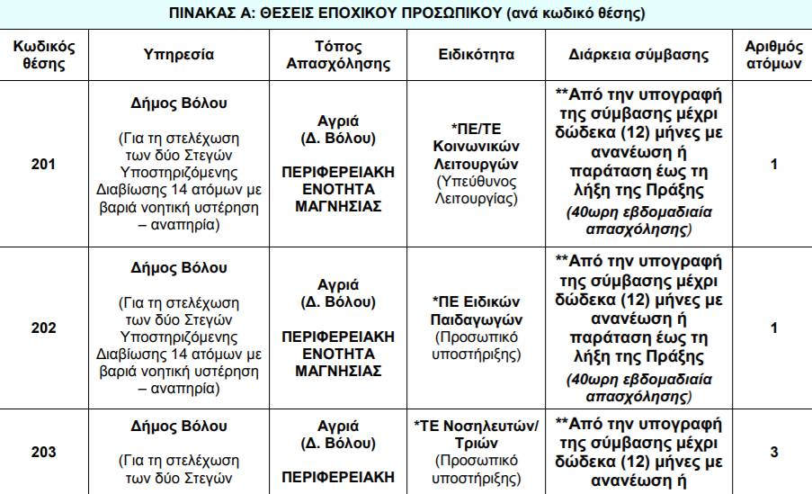 Δείτε στον πίνακα τις θέσεις εργασίας: