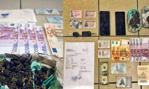Σε έρευνα που πραγματοποιήθηκε βρέθηκαν και κατασχέθηκαν πλαστά έγγραφα του 39χρονου κακοποιού, 2 συσκευές κινητής τηλεφωνίας, 2 μικροδέματα κάνναβης συνολικού βάρους 21,3 γραμμαρίων, 2 Δελτία Αστυνομικής Ελληνικής Ταυτότητας για τις οποίες προέκυψε ότι δηλώθηκαν οι απώλειές τους, βεβαίωση Εγγραφής Πολίτη κράτους μέλους Ευρωπαϊκής Ένωσης και το χρηματικό ποσό των 2.150 ευρώ.