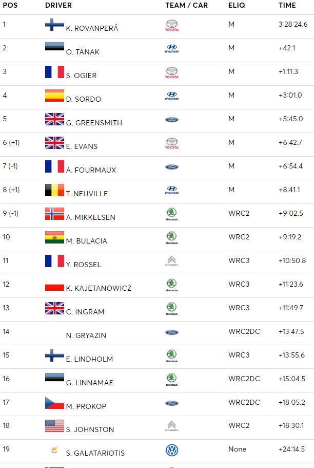 Ο Φινλανδός δεν έμεινε μόνο στους 25 κερδισμένους βαθμούς που του παρείχε η πρώτη θέση, αλλά πήρε και την power stage, φεύγοντας έτσι από την Ελλάδα με 30 βαθμούς στο σακούλι του.
