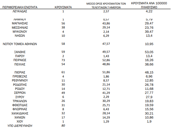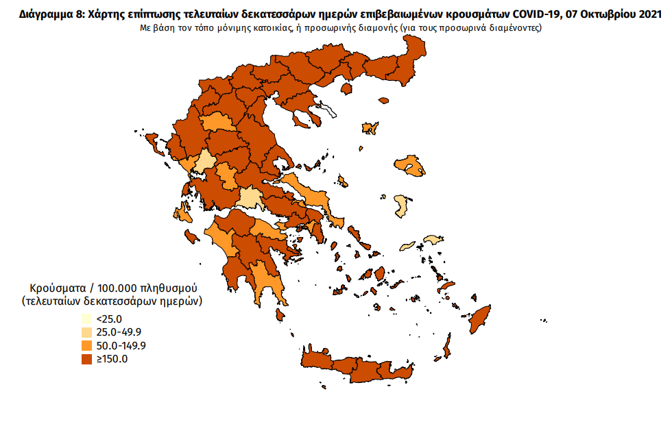 Με βάση τα επιβεβαιωμένα κρούσματα των τελευταίων 7 ημερών, 114 θεωρούνται σχετιζόμενα με ταξίδι από το εξωτερικό και 3.126 είναι σχετιζόμενα με ήδη γνωστό κρούσμα.