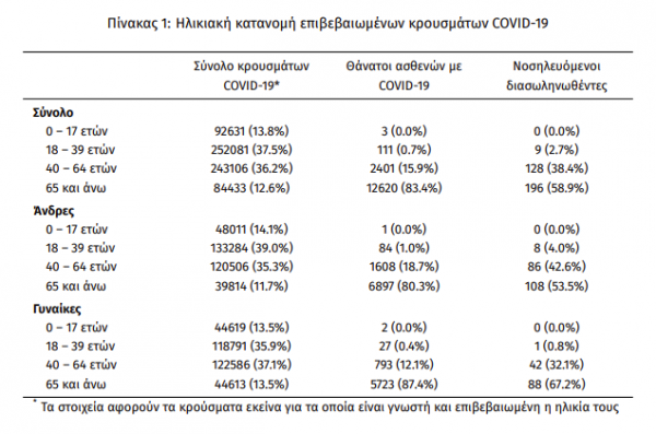 Τα νέα εργαστηριακά επιβεβαιωμένα κρούσματα της νόσου που καταγράφηκαν τις τελευταίες 24 ώρες είναι 1.358 , εκ των οποίων 10 εντοπίστηκαν κατόπιν ελέγχων στις πύλες εισόδου της χώρας. Ο συνολικός αριθμός των κρουσμάτων ανέρχεται σε 676.799 (ημερήσια μεταβολή +0.2%), εκ των οποίων 50.9% άνδρες.