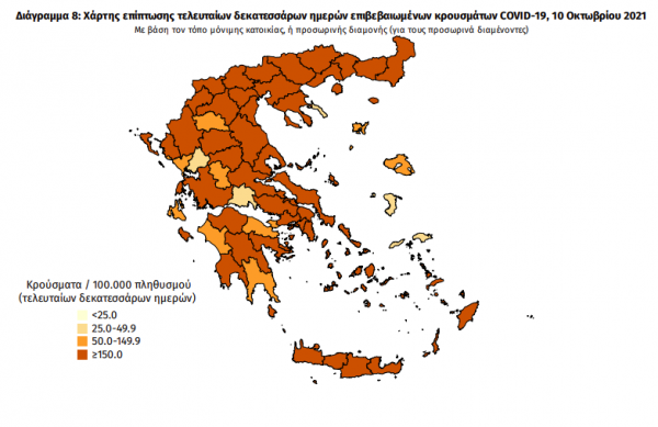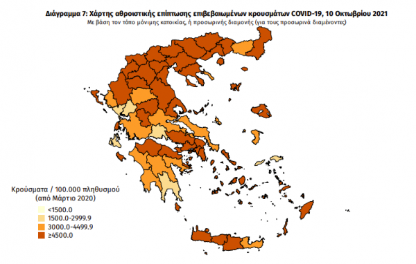 Με βάση τα επιβεβαιωμένα κρούσματα των τελευταίων 7 ημερών, 113 θεωρούνται σχετιζόμενα με ταξίδι από το εξωτερικό και 3.565 είναι σχετιζόμενα με ήδη γνωστό κρούσμα.