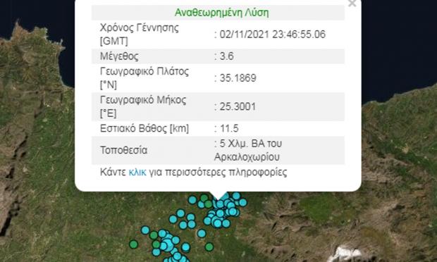 Σύμφωνα με το cretapost.gr, ο σεισμός που καταγράφηκε κατά τη διάρκεια της νύχτας είχε ένταση 3,6 Ρίχτερ ένα τέταρτο πριν τις 2 το βράδυ.