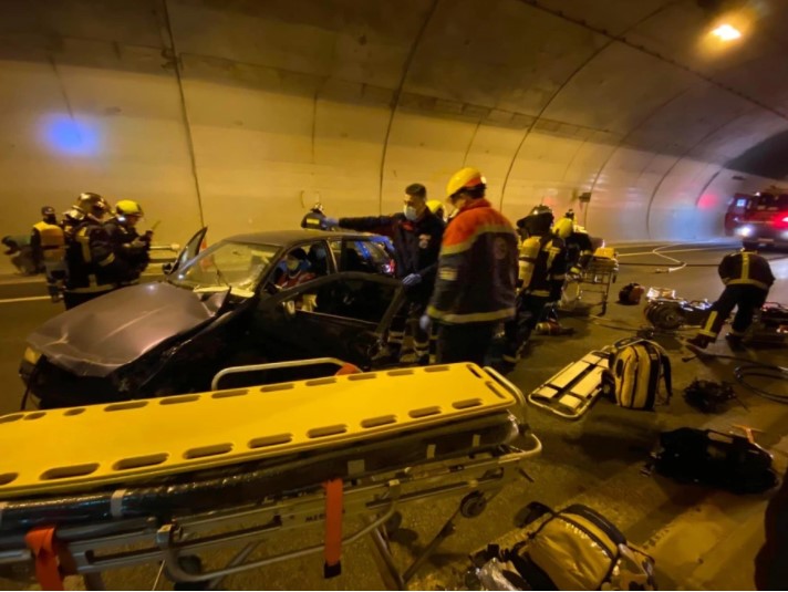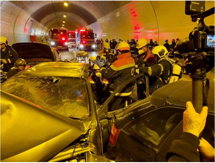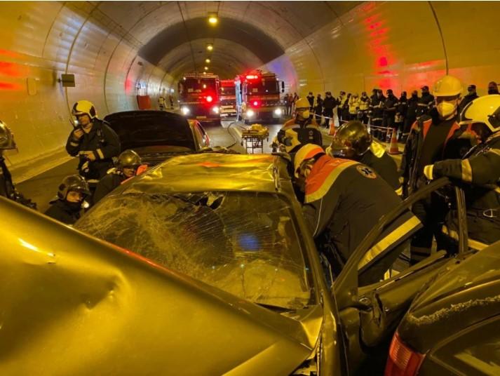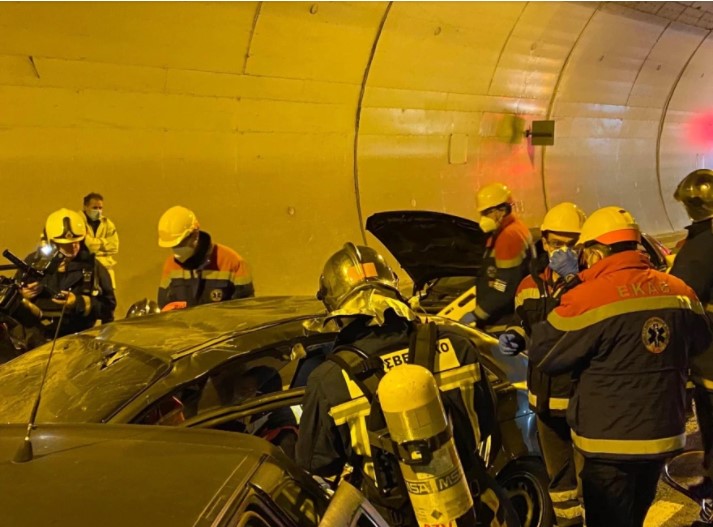Το σενάριο προέβλεπε τροχαίο ατύχημα μέσα στη σήραγγα με εγκλωβισμένους σε οχήματα.