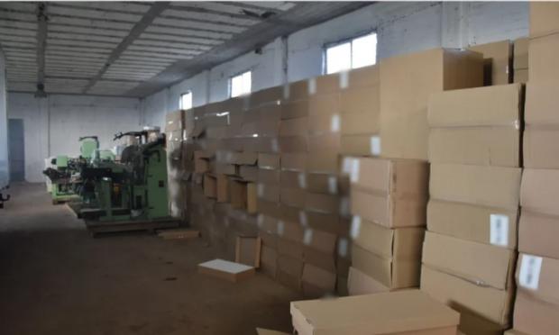 Στον χώρο βρέθηκαν 8.450 κενά κουτιά τυποποιημένων τσιγάρων, 2.330 κουτιά τα οποία περιείχαν φίλτρα τσιγάρων, 48 χαρτοκιβώτια τα οποία περιείχαν χάρτινες συσκευασίες διαφόρων μαρκών, 62 πλαστικά τελάρα, δέκα μηχανήματα, εξαρτήματα με την κατάλληλη συνδεσμολογία για την πακετοποίηση και τυποποίηση των τσιγάρων, καθώς και ένα περονοφόρο όχημα τύπου κλαρκ!