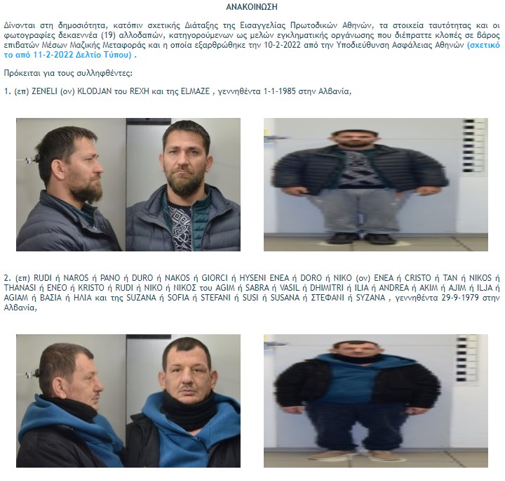 Οι κατηγορούμενοι από τις αρχές Οκτωβρίου 2021, είχαν συγκροτήσει μια εγκληματική οργάνωση που δρώντας σε ομάδες έκανε κλοπές επιβατών εντός Μέσων Μαζικής Μεταφοράς (αστικά λεωφορεία, τρόλεϊ, μετρό, ΗΣΑΠ, Σταθμό Υπεραστικών Λεωφορείων Κηφισού, Σιδηροδρομικό Σταθμό Λαρίσης κ.τ.λ.), καθώς σε στάσεις αυτών.
