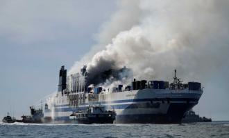 Αναζωπυρώθηκε η φωτιά στο εσωτερικό του επιβατηγού οχηματαγωγού πλοίου Euroferry Olympia, στο λιμάνι του Αστακού, μετά το άνοιγμα του καταπέλτη.