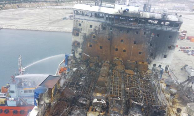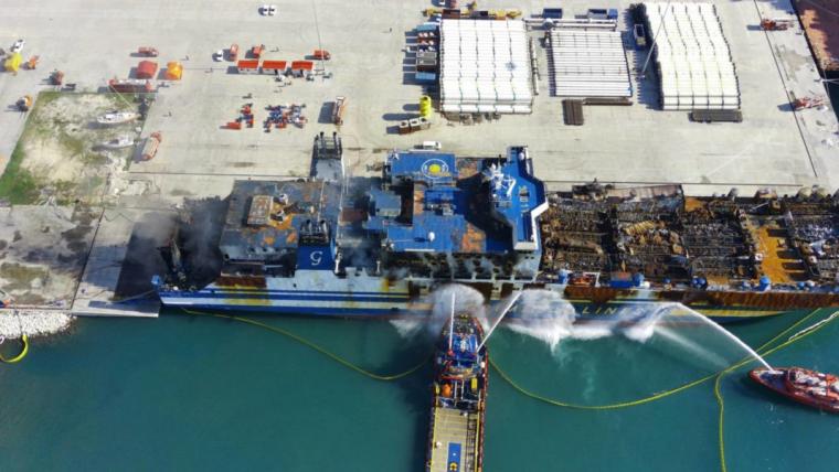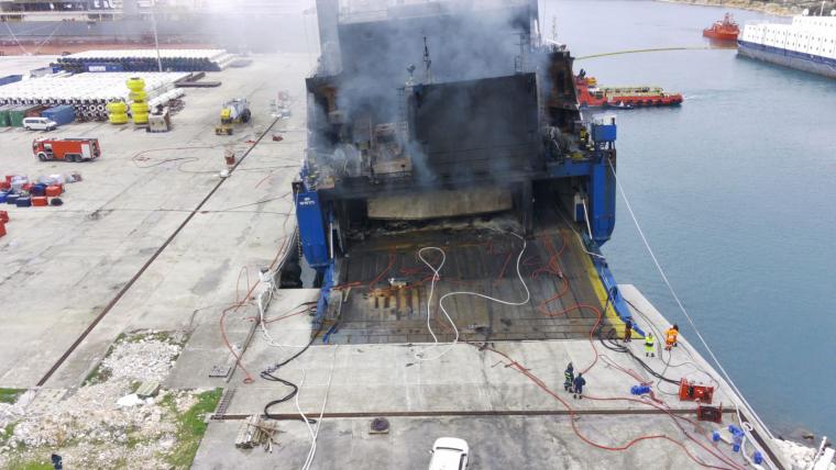 Μετά το άνοιγμα του καταπέλτη, η φωτιά αναζωπυρώθηκε και συνεχίζει το καταστροφικό της έργο στο δεύτερο γκαράζ που καίει αυτοκίνητα, φορτηγά και εμπορεύματα. Η θερμοκρασία στο εσωτερικό του καραβιού έχει ξεπεράσει τους 500 βαθμούς Κελσίου, απαγορεύοντας να γίνει η οποίαδηποτε επιχείρηση πυρόσβεσης από τους άντρες της ΕΜΑΚ, σύμφωνα με το ertnews.gr.