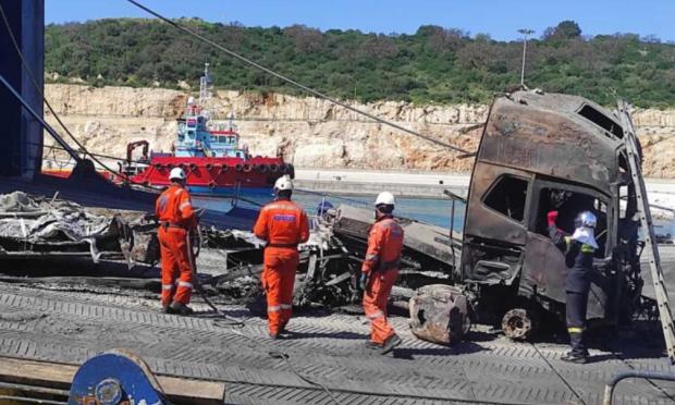 Συνεχίζονται οι εργασίες απομάκρυνσης καμένων οχημάτων από το Euroferry Olympia. Από το δεύτερο και το τέταρτο γκαράζ απομακρύνθηκαν 70 καμένα οχήματα και φορτηγά. Οι έρευνες συνεχίζονται για τον εντοπισμό των δύο αγνοουμένων.