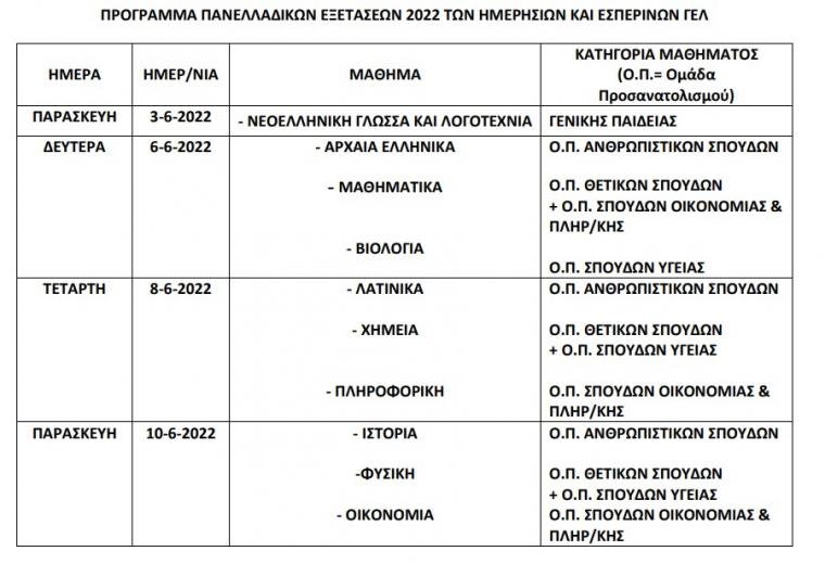 Πρόγραμμα Πανελληνίων 2022 - Οι μαθητές των γενικών λυκείων (ΓΕΛ) εξετάζονται: