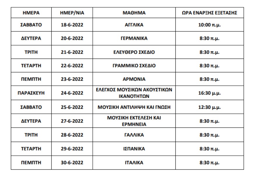 Πρόγραμμα εξετάσεων ειδικών μαθημάτων και μουσικών μαθημάτων 2022 ΓΙΑ ΓΕΛ & ΕΠΑΛ