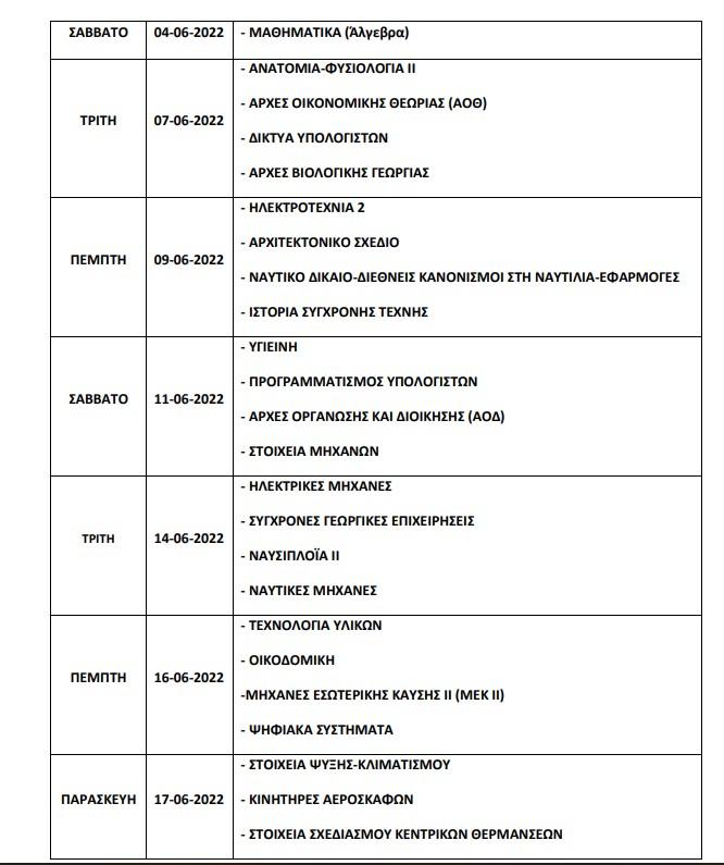 ΠΕΜΠΤΗ 16-06-2022: ΤΕΧΝΟΛΟΓΙΑ ΥΛΙΚΩΝ, ΟΙΚΟΔΟΜΙΚΗ, ΜΗΧΑΝΕΣ ΕΣΩΤΕΡΙΚΗΣ ΚΑΥΣΗΣ II (ΜΕΚ ΙΙ), ΨΗΦΙΑΚΑ ΣΥΣΤΗΜΑΤΑ