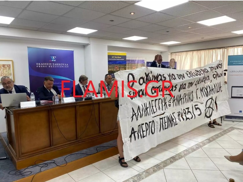 Σύμφωνα με το flamis.gr, οι αναρχικοί φώναζαν συνθήματα για την μη παρέμβαση των δικηγόρων στα αιτήματα του απεργού πείνας Γιάννη Μιχαηλίδη.
