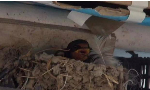 Το χελιδονάκι έχει γεννήσει τα αυγά του και ο κ. Νίκος έχει φτιάξει μια κατασκευή για να προστατέψει την φωλιά του. Οι στενοί του φίλοι από την περιοχή παρατηρούν εδώ και αρκετό καιρό εντυπωσιασμένοι.