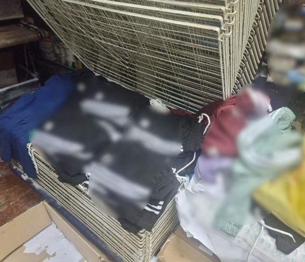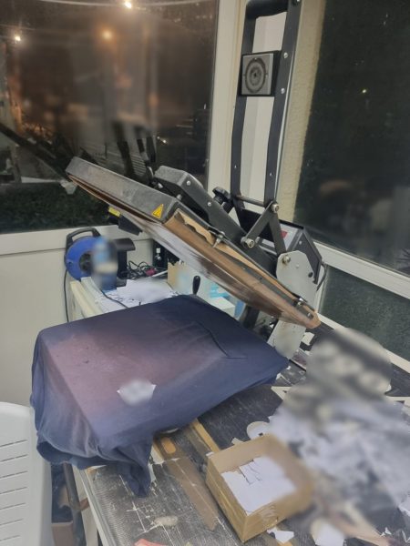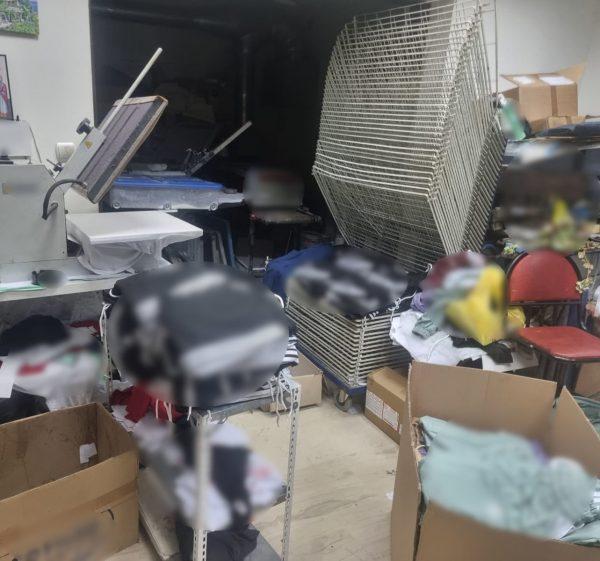 Σε έρευνες που ακολούθησαν στο χώρο του εργαστηρίου, καθώς και στα οχήματα, οι αστυνομικοί βρήκαν, μεταξύ άλλων, 30.000 έτοιμα εντυπώματα σημάτων επώνυμων εταιριών, 2.387 ενδύματα, τα οποία ήταν απομιμητικά προϊόντα επώνυμων εταιριών, 1.368 ενδύματα έτοιμα προς εντύπωση σημάτων, τρεις ηλεκτρικές πρέσες, μία ηλεκτρική συσκευή επιγραφοποιίας κ.ά.
