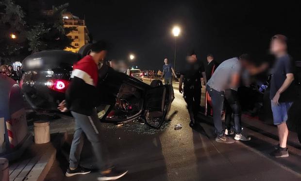 Συγκεκριμένα, ένα αυτοκίνητο προσέκρουσε σε διπλανό όχημα στο ύψος της Δημοσθένους στην Θεσσαλονίκη, λίγο πριν την πλατεία Αριστοτέλους, με αποτέλεσμα να αναποδογυρίσει το μαύρο Gold και να προκληθεί το σοκαριστικό τροχαίο.