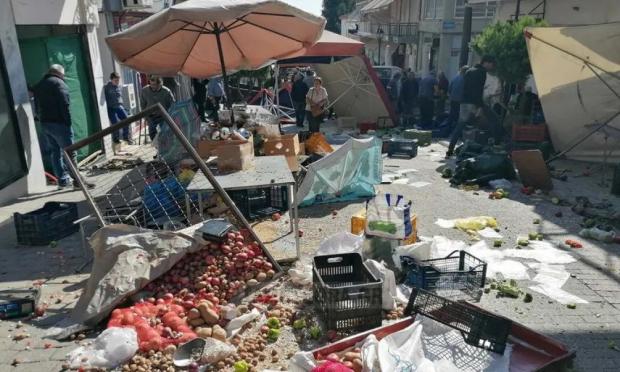 Όλα ξεκίνησαν όταν ένας άνδρας με το αγροτικό του όχημα σε μία τρελή πορεία εισέβαλε στη λαϊκή αγορά λίγο πριν τη λήξη της και παρέσυρε κόσμο εκ των οποίων η μια είναι η σύζυγός του.