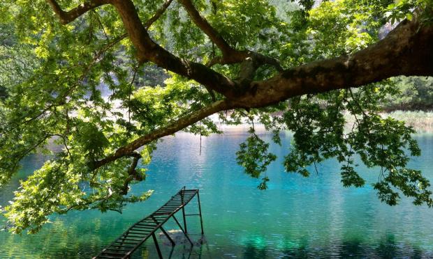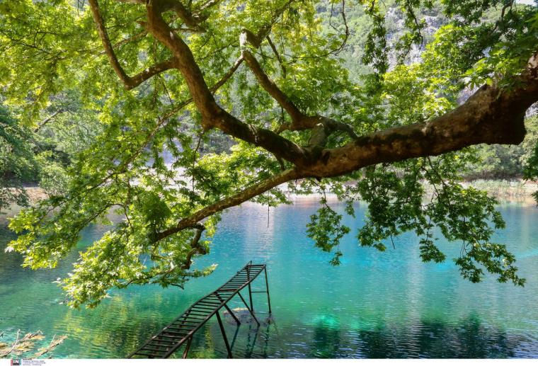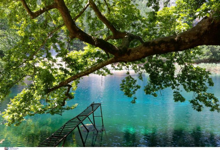 Το πράσινο της φύσης δίνει τη σειρά του στο συγκλονιστικό βαθύ γαλάζιο χρώμα των νερών της λίμνης, το οποίο, αναλόγως με τα χρώματα του ουρανού, μπορεί να γίνει ακόμη και ανοιχτό πράσινο.