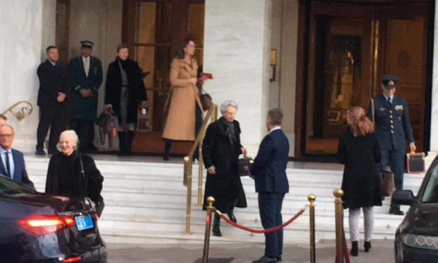 Ο πρωτότοκος γιος του Κωνσταντίνου, Παύλος, η σύζυγός του, Μαρί Σαντάλ, ο αδελφός του, Νίκολαος, η σύζυγός του, Τατιάνα Μπλάτνικ αφού αποχαιρέτησαν τα περισσότερα από τα μέλη των βασιλικών οικογενειών που παραβρέθηκαν στο «αντίο» στον τέως βασιλιά, στη συνέχεια πήραν πρωινό στο ξενοδοχείο που βρίσκεται στην πλατεία Συντάγματος.
