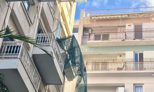 Σημερινές φωτογραφίες επιβεβαιώνουν ότι το μπαλκόνι εξακολουθεί -μέχρι και αυτή την ώρα- να κρέμεται στο κενό.