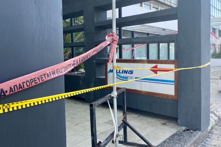 Ένα από τα μπαλκόνια του ξενοδοχείου «Ελληνίς» βρίσκεται υπό κατάρρευση, καθώς έχει αποκολληθεί από το υπόλοιπο κτίριο, χωρίς ωστόσο να έχει πέσει ακόμη.