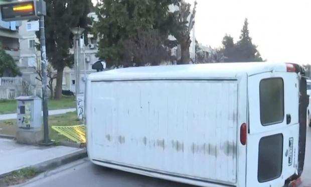 Όπως ανέφερε ο οδηγός στην ρεπόρτερ της ΕΡΤ3, έχασε τον έλεγχο του οχήματος όταν το έκλεισε άλλο όχημα με αποτέλεσμα να πέσει πάνω σε κιγκλίδωμα και κατόπιν στη στάση του λεωφορείου, όπου ευτυχώς δεν περίμεναν επιβάτες. Το φορτηγό ανατράπηκε, ο ίδιος δεν τραυματίστηκε και ελευθερώθηκε μόνος του από το αναποδογυρισμένο όχημα.