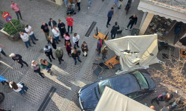 Σοκ προκαλούν τα πλάνα του βίντεο από τη στιγμή που το αυτοκίνητο ενός 80χρονου φεύγει εκτός ελέγχου και πέφτει σε θαμώνες εστιατορίου στα Χανιά.