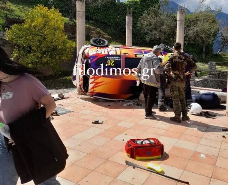 Από το ατύχημα έχουν τραυματιστεί οι δυο επιβάτες, ενώ το όχημα έχει υποστεί σοβαρές ζημιές.