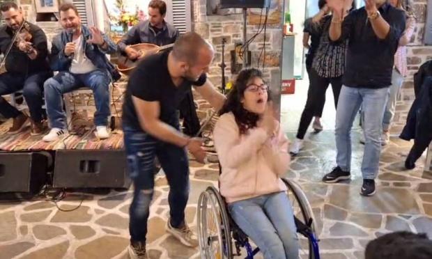 Την ημέρα των γενεθλίων της, η Αργυρώ, από το χωριό Θολάρια της Αμοργού, χόρεψε «μπάλο» με έναν φίλο της, καθισμένη στο αναπηρικό της αμαξίδιο, συγκινώντας τους παρευρισκόμενους στο γλέντι αλλά και όλους όσους είδαν το βίντεο.