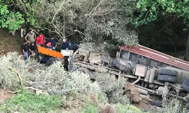 Το φορτηγό στο οποίο επέβαιναν οι δύο Έλληνες εργαζόμενοι έπεσε σε βαθιά χαράδρα, κάτω από αδιευκρίνιστες συνθήκες. Χρειάστηκε, μάλιστα, η επέμβαση της πυροσβεστικής, με τρία οχήματα για τον απεγκλωβισμό των δύο τραυματιών.