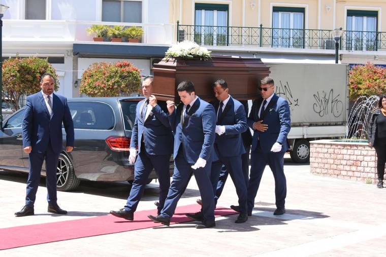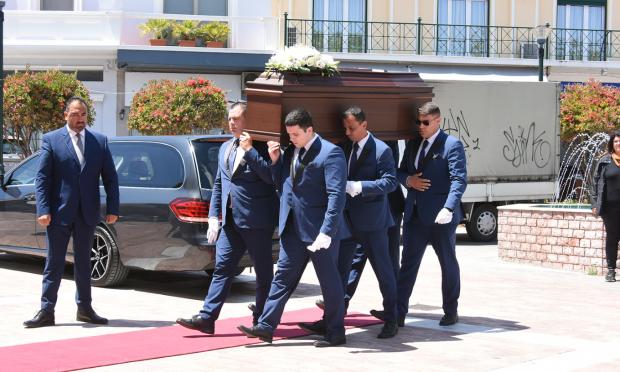 Από νωρίς το μεσημέρι της Παρασκευής, έφτασαν στον Ιερό Ναό Αγίου Δημητρίου στην κεντρική πλατεία Κερατέας τα παιδιά και η δεύτερη σύζυγός του καλλιτέχνη.
