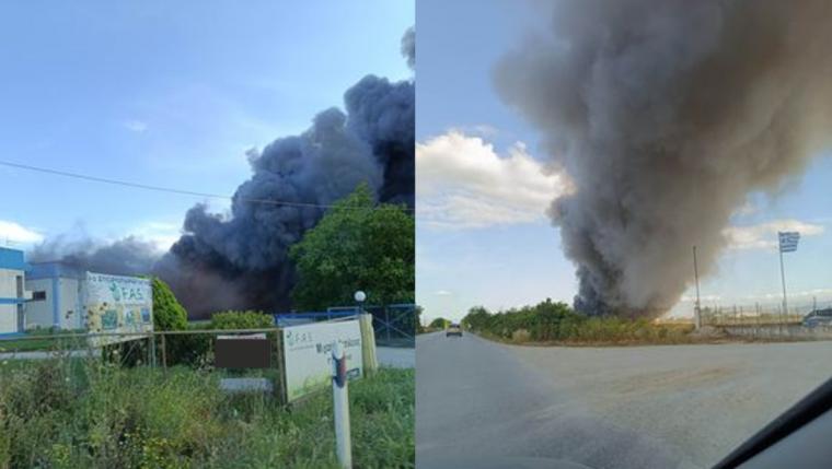 Η φωτιά ξέσπασε λίγα λεπτά μετά τις 18.00 και συγκεκριμένα στο 10χλμ Π.Ε.Ο. Λάρισας - Βόλου, όπου πυκνοί καπνοί άρχισαν να τυλίγουν το εν λόγω εργοστάσιο.