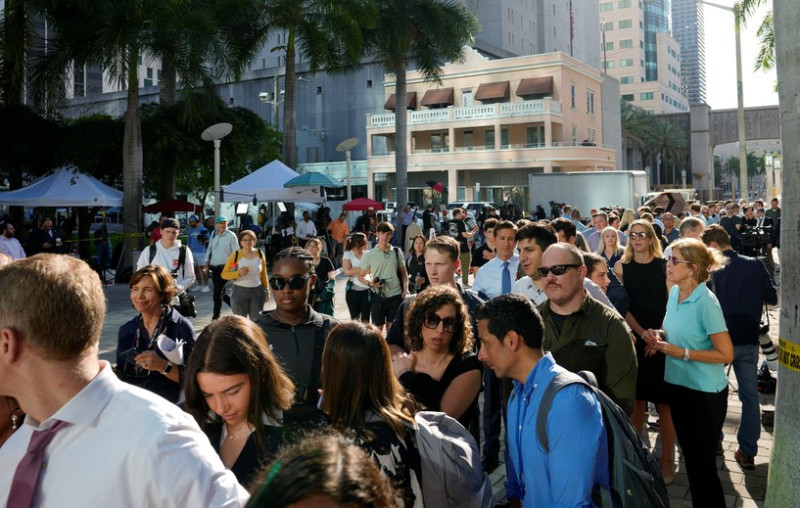 Έξω από το δικαστήριο έχουν συγκεντρωθεί εκατοντάδες δημοσιογράφοι και φωτογράφοι από όλα τα μέσα ενημέρωσης του πλανήτη.