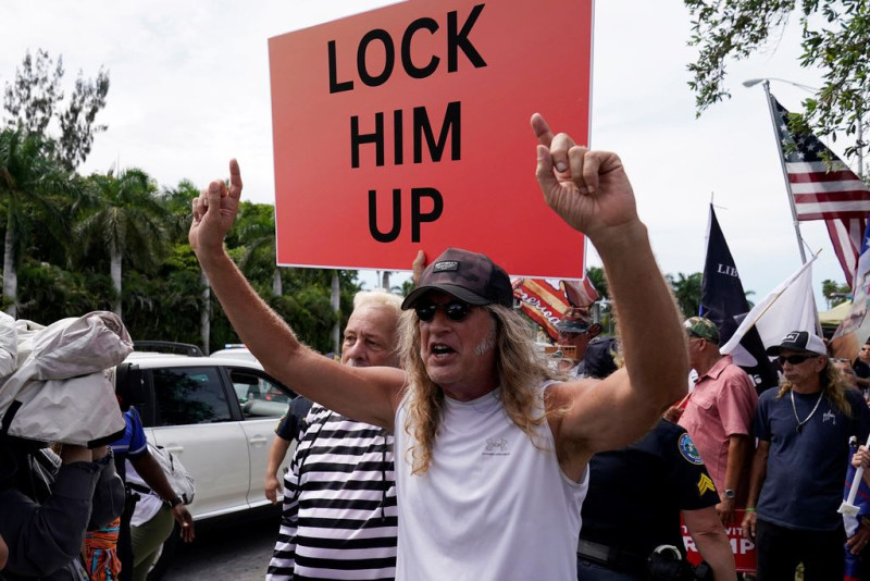 Επίσης καταφθάνουν συνεχώς διαδηλωτές – οπαδοί και επικριτές του Τραμπ – με συνθήματα υπέρ και κατά του πρώην προέδρου και υποψηφίου για το χρίσμα των Ρεπουμπλικάνων ενόψει των προεδρικών εκλογών του 2024.