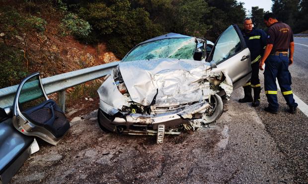 Η σύγκρουση ήταν τόσο σφοδρή που χρειάστηκε η επέμβαση 4 οχημάτων της Πυροσβεστικής και 12 Πυροσβεστών για τον απεγκλωβισμό του οδηγού και της συνοδηγού από το αυτοκίνητο.